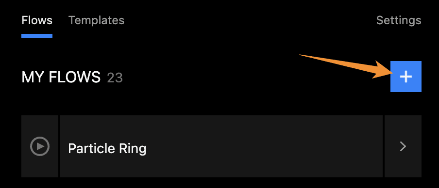 Create a flow by clicking on the plus icon on the top right.